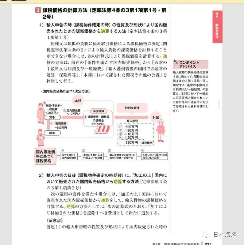 大致釋義如下:當(dāng)日本海關(guān)無法對(duì)申報(bào)金額正確與否或者對(duì)貿(mào)易流程無法正確判斷的時(shí)候,有權(quán)利要求客戶按照逆算法則來修改申報(bào)金額進(jìn)行納稅。如下圖所示條例原文: