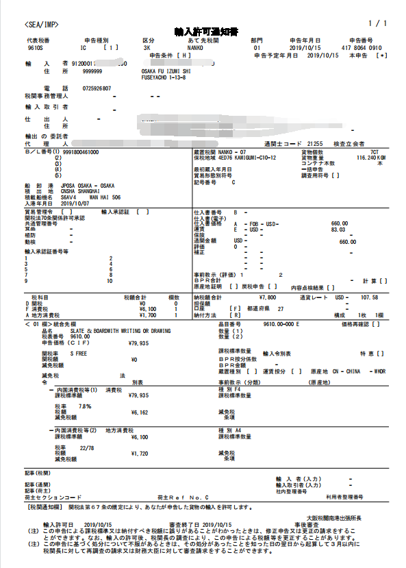 日本稅金單格式如下圖所示